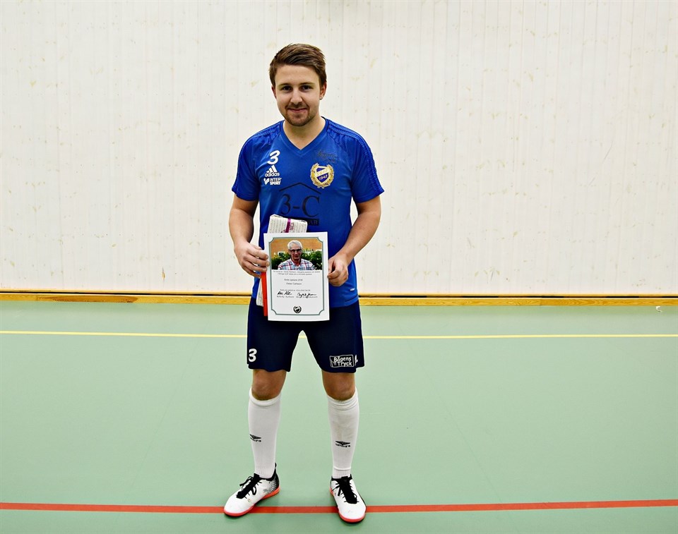 På bild ser vi årets spelare i A-laget 2018: Oskar Carlsson (priset skänkt av Kullens skor). Årets spelare B-laget: Filip Bengtsson. Årets genombrott: Olle Axelsson. Träningspris till: Ogge, Jon och Calle!